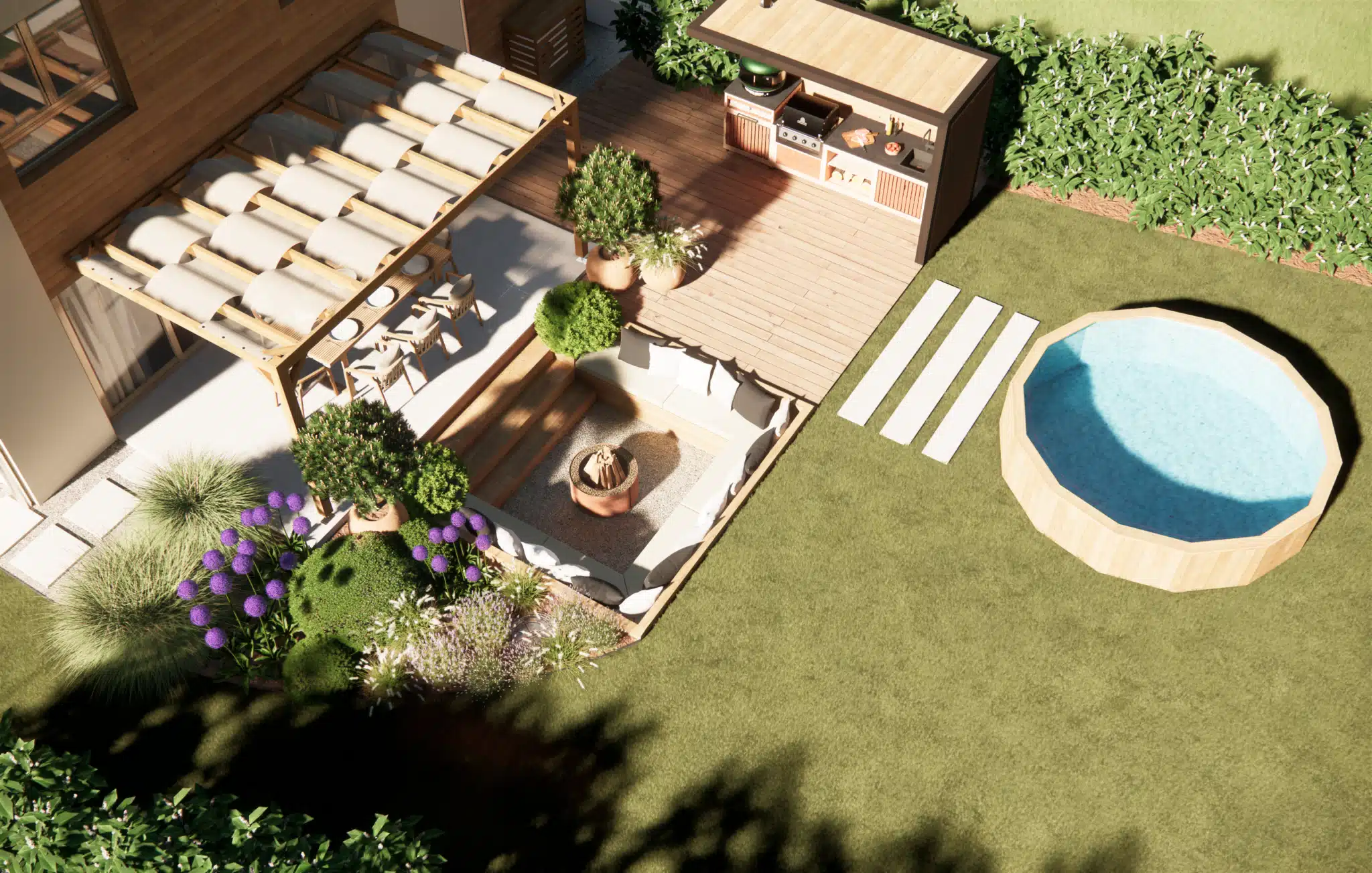 Avancez sereinement dans votre projet d'aménagement paysager avec nos plans de jardin 3D ultra réalistes