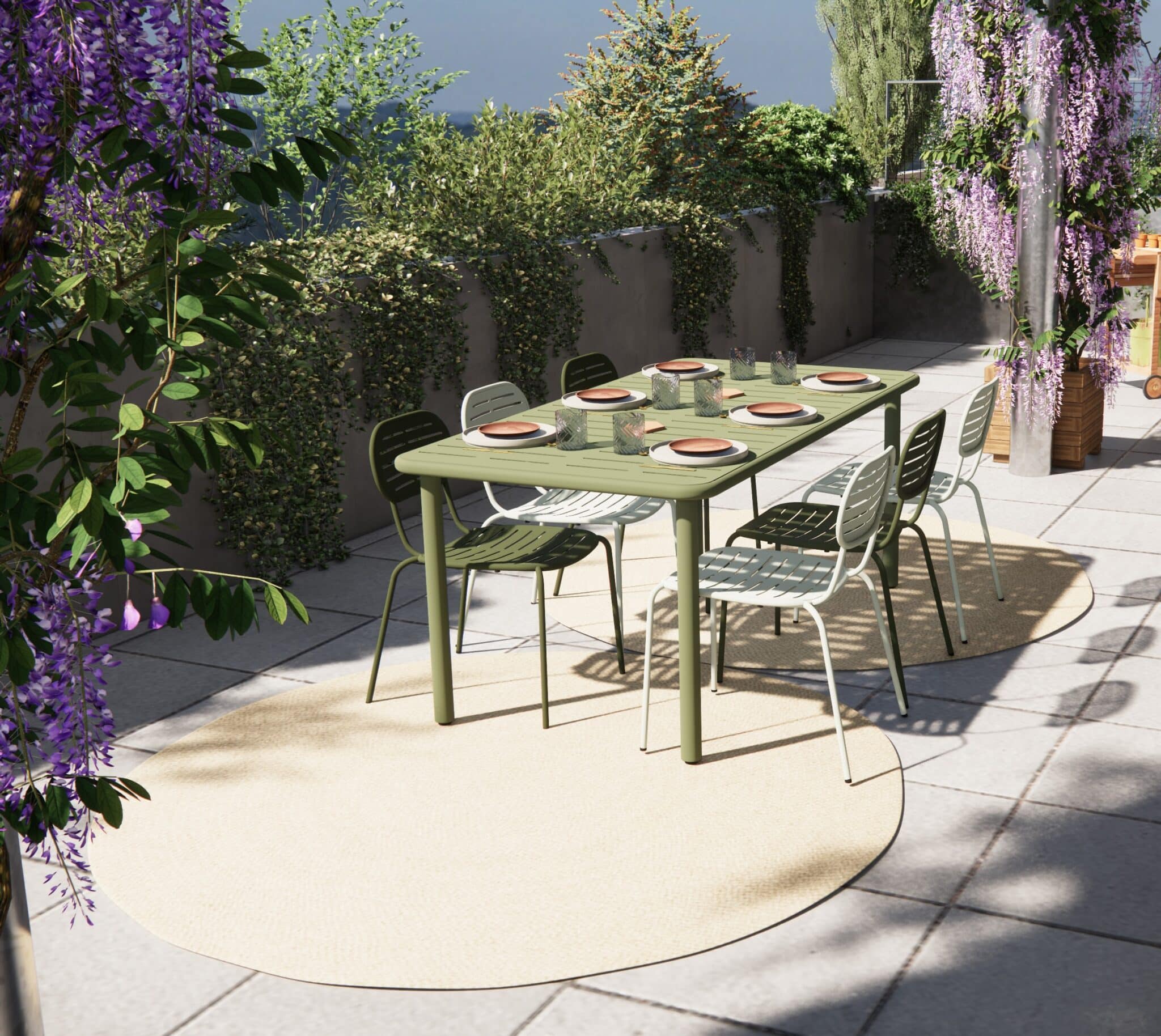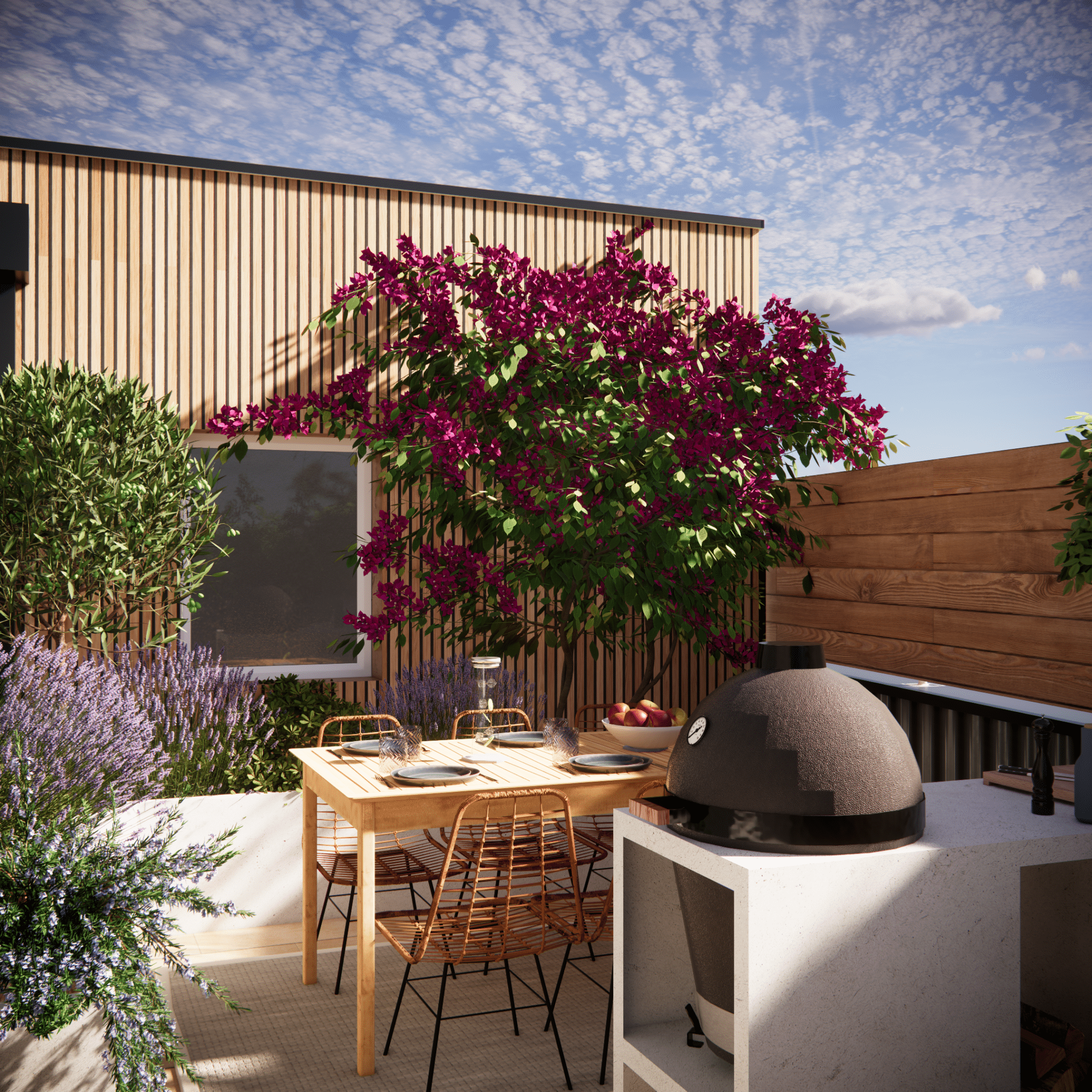 Un petit extérieur pensé pour profiter à la fois de repas et de moments de détente au soleil.