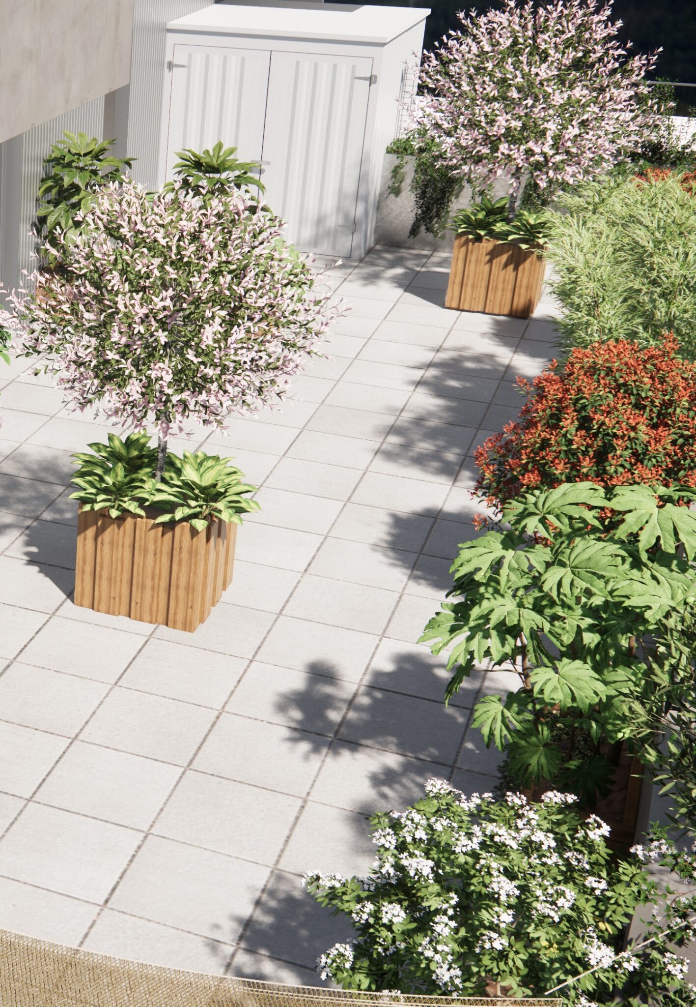 Conception 3D d’une grande terrasse.