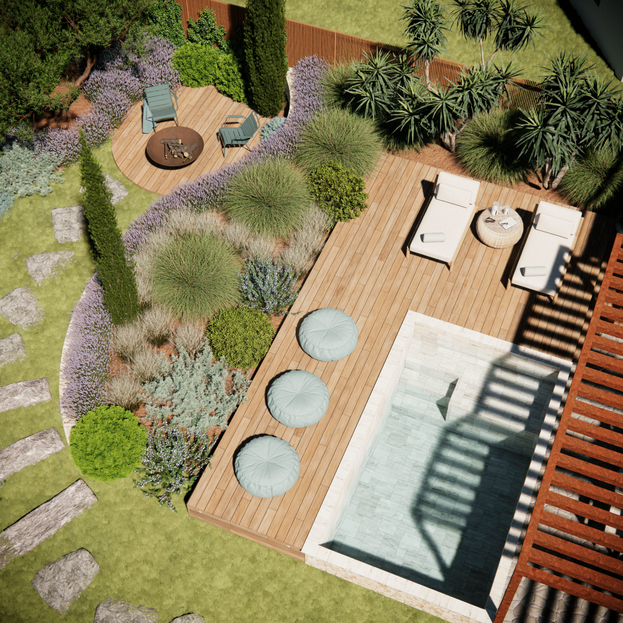 offrir un jardin à l’esprit californien, agréable à vivre toute l’année.